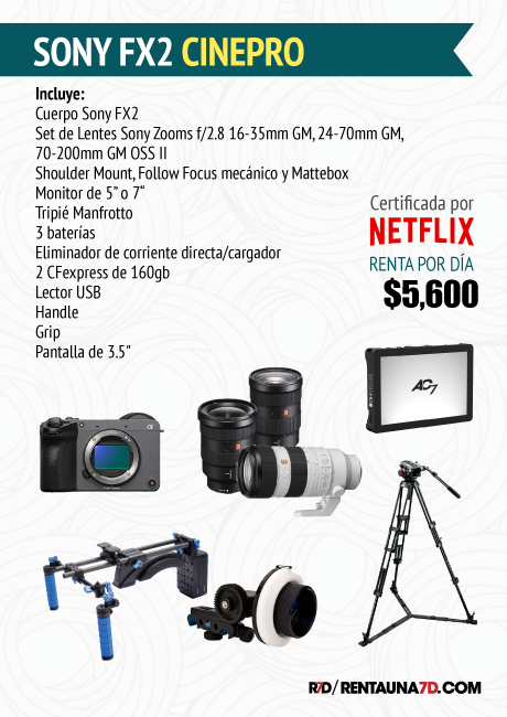 La FX2 es una cámara híbrida de línea Cinema Line, permitiendo captura fotográfica avanzada con funciones de disparo en Log y aplicación de LUTs.
