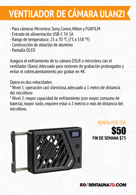 Asegura el enfriamiento de tu cámara DSLR o mirrorless con el ventilador Ulanzi. Adecuado para sesiones de grabación prolongadas y evitar el sobrecalentamiento por grabar en 4K.
